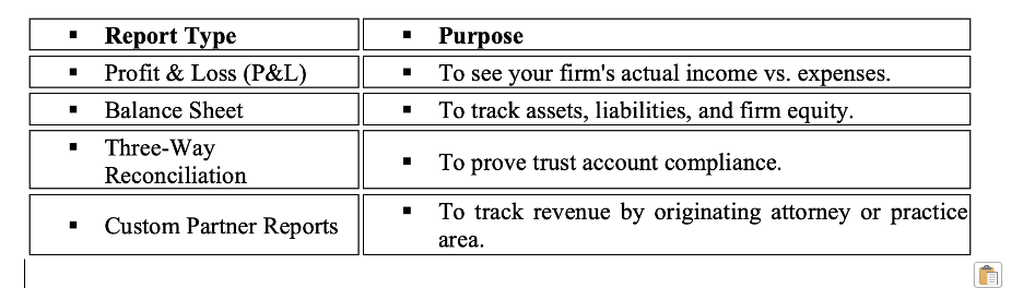 Specifically, ask how they differentiate between reimbursable (advanced) costs and non-reimbursable firm expenses. Misclassifying these can lead to tax errors and lost revenue for the firm.